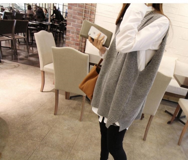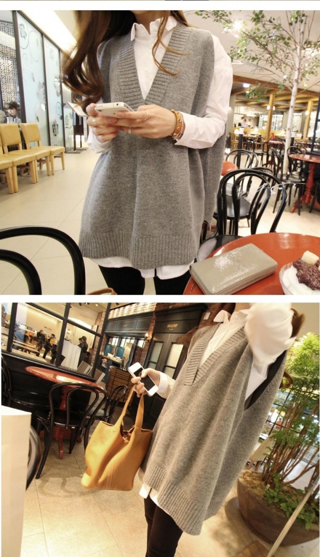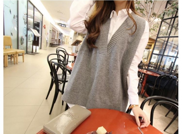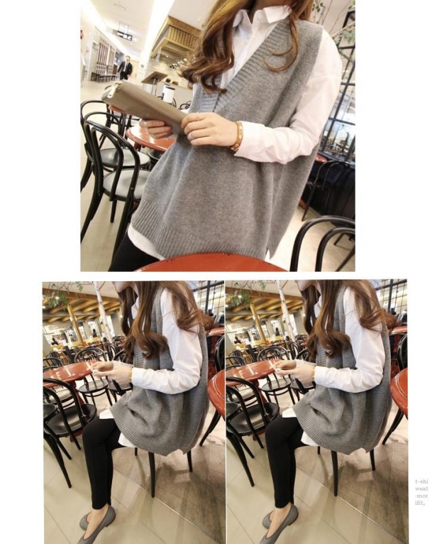 韓國代購連線春秋新款V領毛衣針織背心