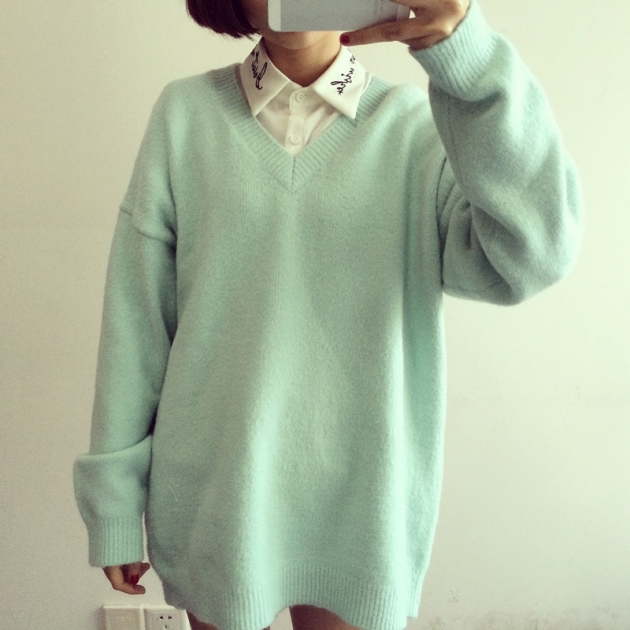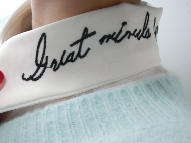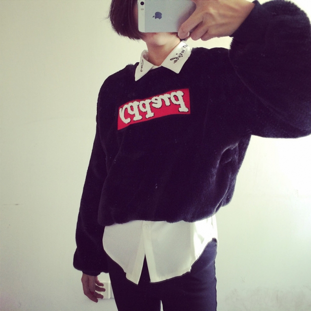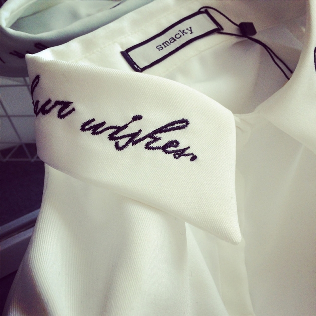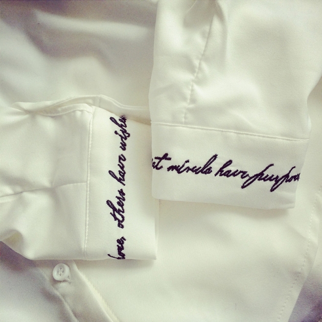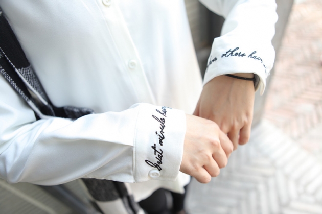 韓國連線春秋新款百搭修身雪纺刺繡字母襯衫