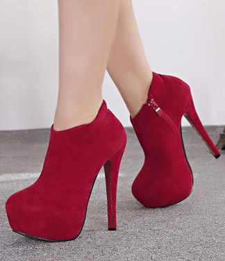 絨布高跟短靴